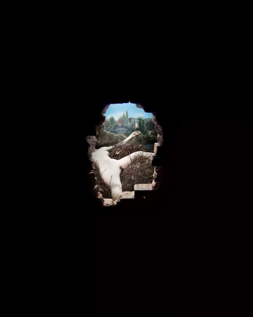 Marcel Duchamp, Installation view of Étant: 1° la chute d’eau, 2° le gaz d’éclairage (1968) Philadelphia Museum of Art