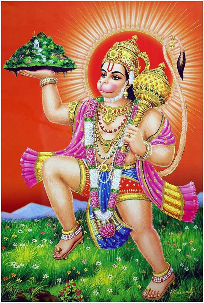 Hanuman With Parvat, (2015) Poster With Golden Art Zari Work, 44 X 66 cm, digitally rendered
