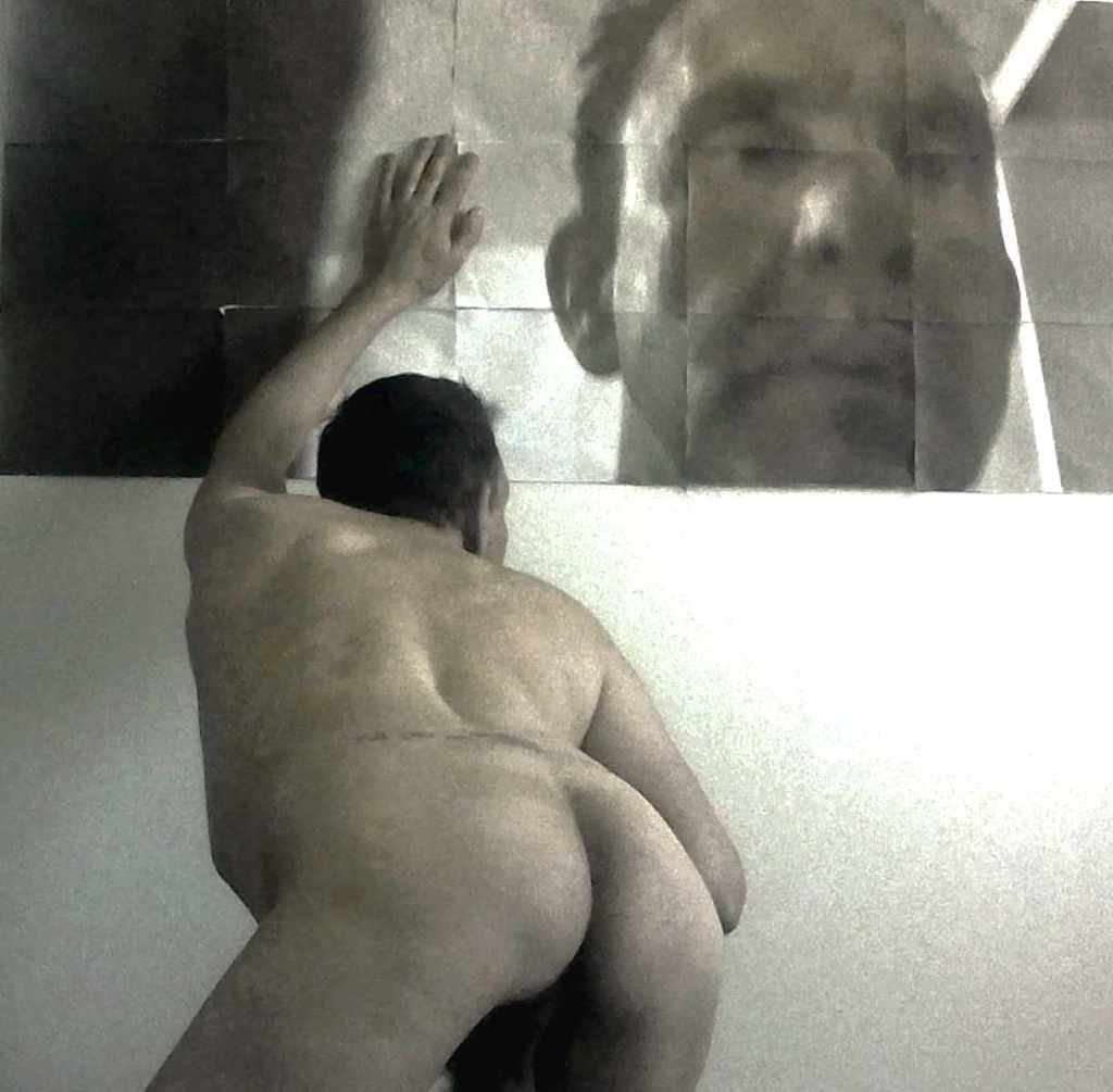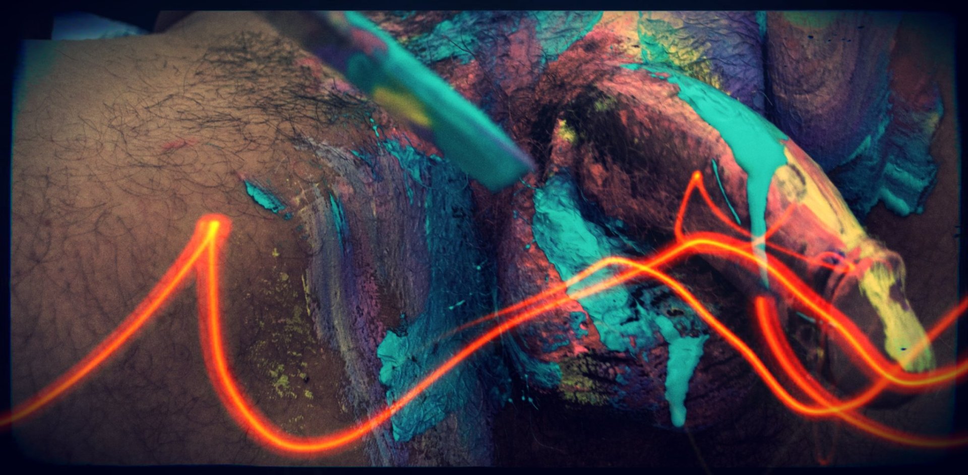 The only close up dick shot in the series. The paint and paintbrush are real as I carefully painted my body for a photo session, of which many less provocative shots would appear in the show.