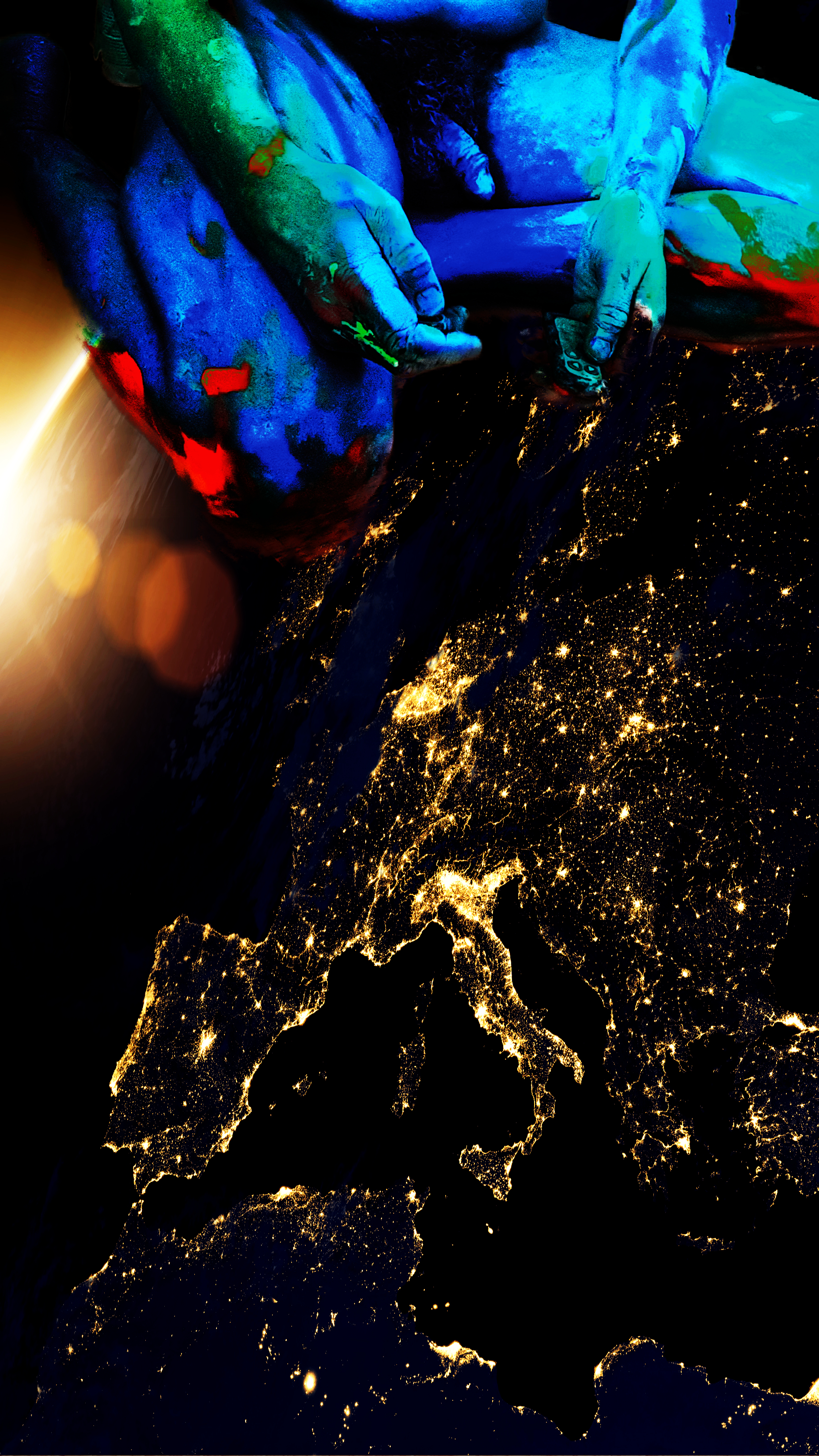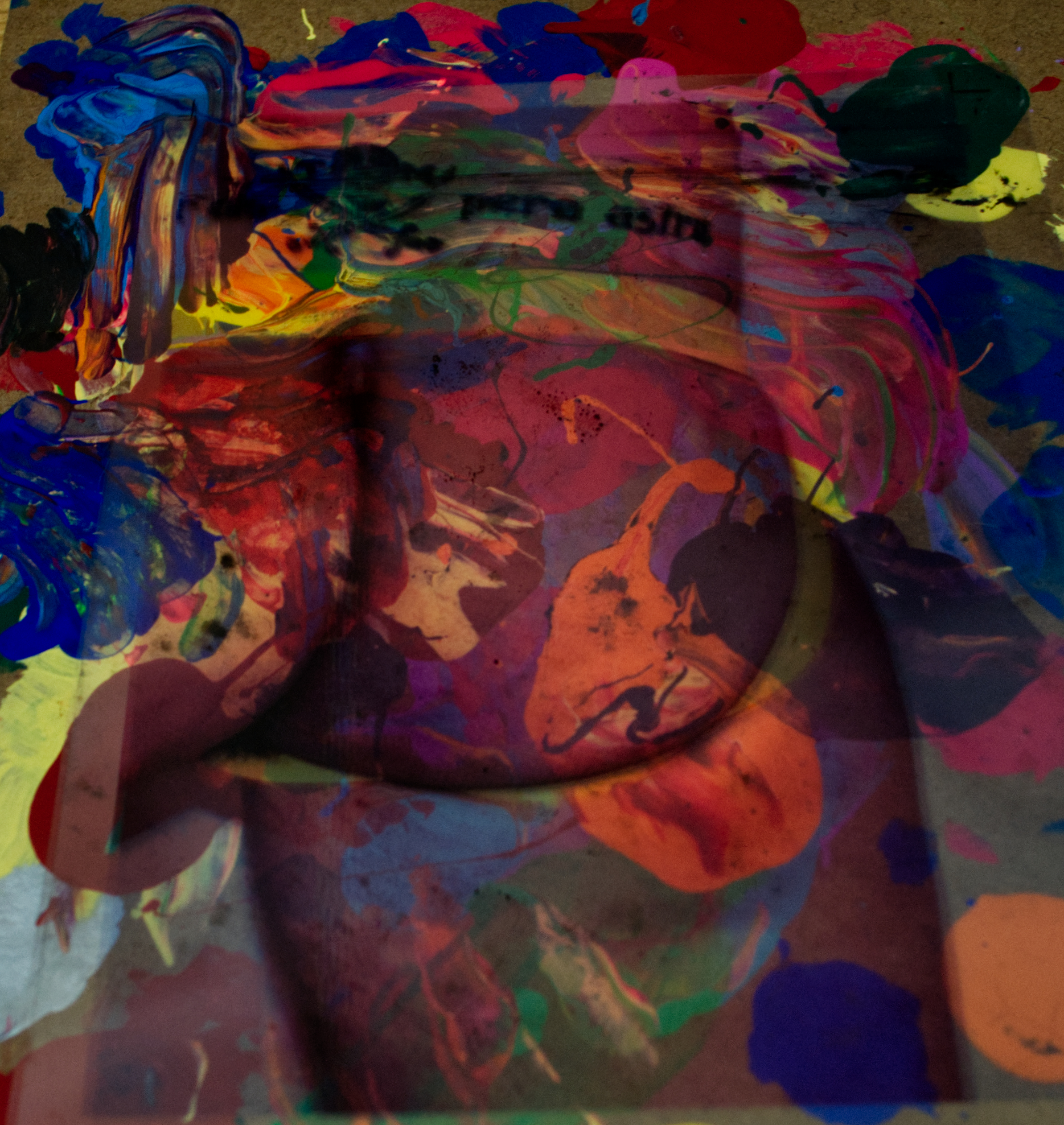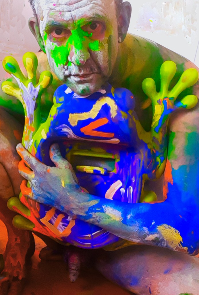 A number of photos at the exhibit were taken during sessions I had covered my body in paint. There was no particular aim here beyond the novelty of one’s body as canvas.