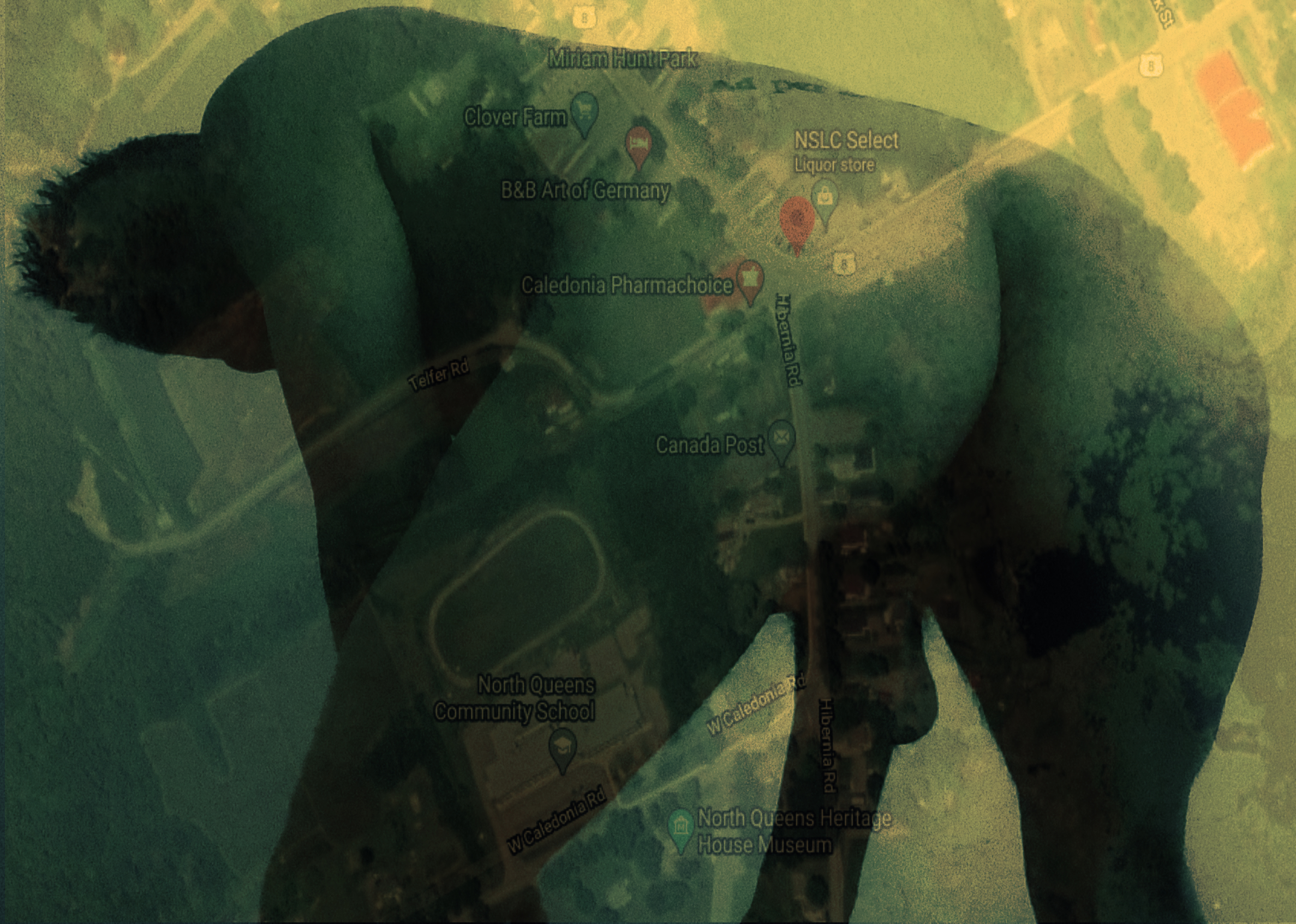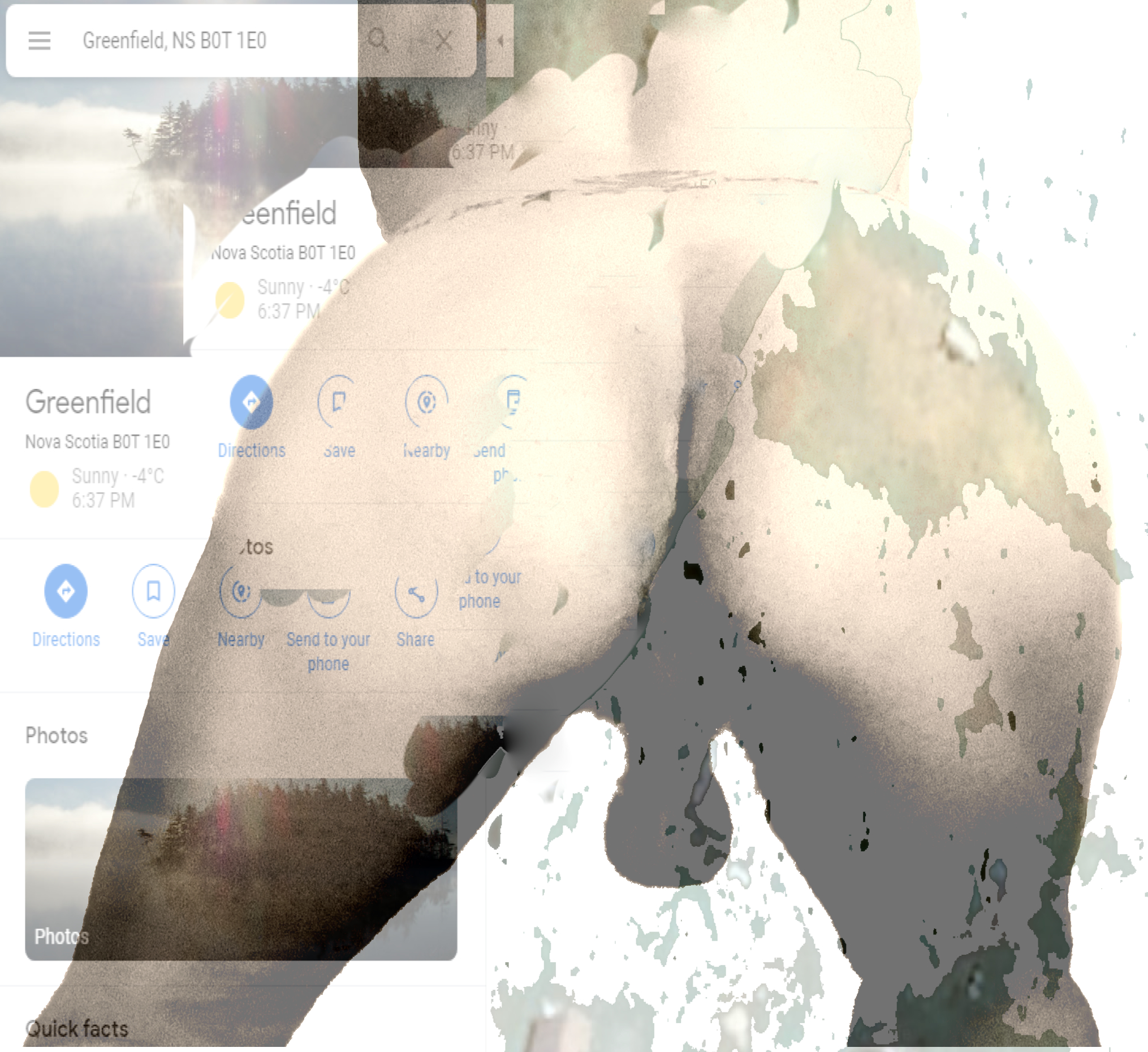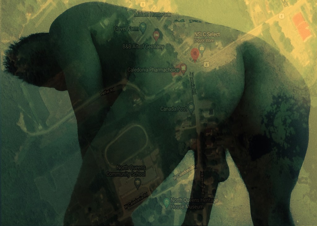 There were a number of images in the show portraying my body overlaid with google maps of the area where I grew up. I am in these pieces trying to accept my own sexuality amidst the painful history of being raised in a rural, homophobic town.