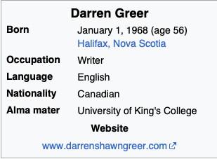 Darren Greer (born January 1st, 1968) is a Canadian writer.